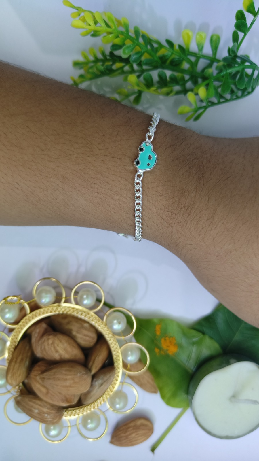 Sale! Previous Product Next Product Bracelet ₹1,200.00 Original price was: ₹1,200.00.₹900.00Current price is: ₹900.00. Bracelet quantity Add to cart Categories: Bracelet, Silver Description Reviews (0) Description weight: 3.96 Length:6′ Reviews There are no reviews yet. Be the first to review “Bracelet” Cancel replyYour email address will not be published. Required fields are marked *Your rating * Rate… Perfect Good Average Not that bad Very poor Your review *Name * Email * Save my name, email, and website in this browser for the next time I comment. Related products Quick View Sale! Quick View Silver, Friendship BandFriendship Band 01 ₹1,800.00 Original price was: ₹1,800.00.₹1,530.00Current price is: ₹1,530.00. Add to cart Quick View Sale! Quick View Silver, PendantTrishul Pendant ₹3,999.00 Original price was: ₹3,999.00.₹3,199.00Current price is: ₹3,199.00. Add to cart Quick View Sale! Quick View Silver, Chain, RakhiRakhi ₹950.00 Original price was: ₹950.00.₹910.00Current price is: ₹910.00. Add to cart
